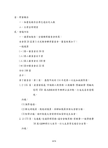 本會第 20 屆第 5 次定期會聯席審查會,審查結果如下: