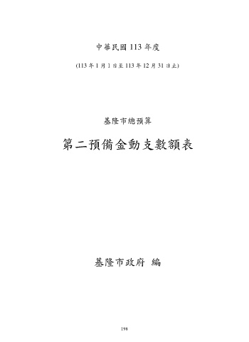 中華民國 113 年度 (113 年 1 月 1 日至 113 年 12 月 31 日止) 基隆市總預算 第二預備金動支數額表 基隆市政府 編 198