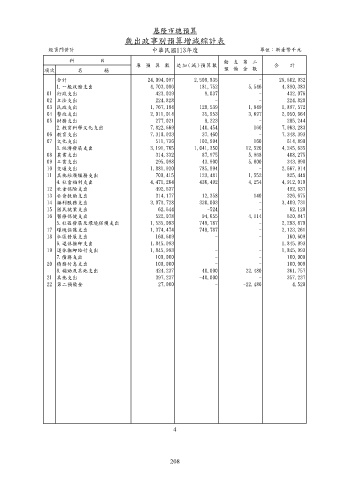 歲出政事別預算增減綜計表