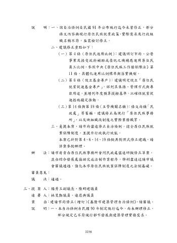 辦 法〆請市府責由原住民族事務所會同民政處儘速研擬修正草案,