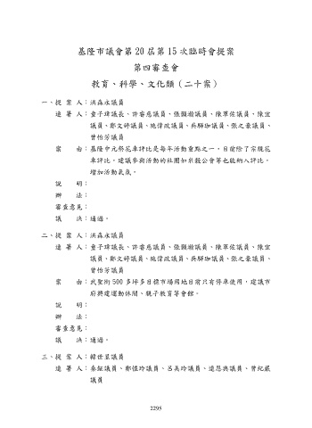 基隆市議會第 20 屆第 15 次臨時會提案
