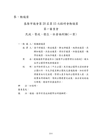 基隆市議會第 20 屆第 15 次臨時會動議案