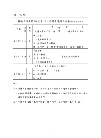 基隆市議會第 20 屆第 15 次臨時會議事日程表程序委員會通過