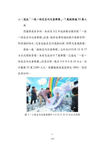 二、達成「一區一特色室內兒童樂園」,7 處服務逾 33 萬人