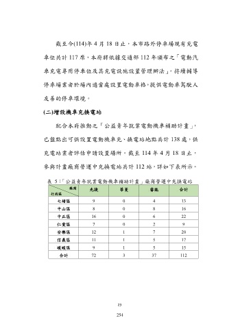 車位共計 117 席,本府將依據交通部 112 年頒布之「電動汽