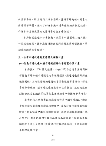 (一)信義市場改建中繼市場規劃評估等前置作業計畫