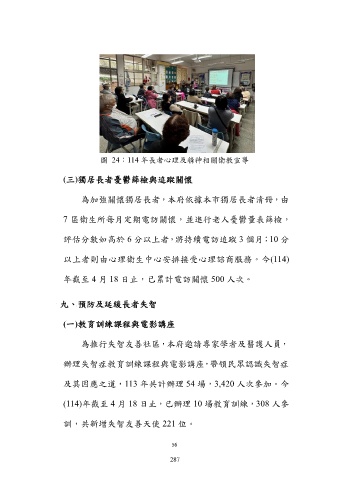 7 區衛生所每月定期電訪關懷,並進行老人憂鬱量表篩檢,