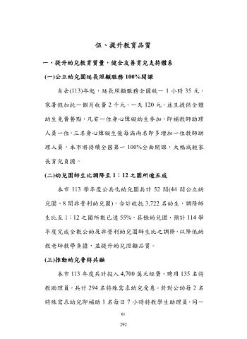 教助理員,共計 294 名特殊需求幼兒受惠。針對公幼每 2 名