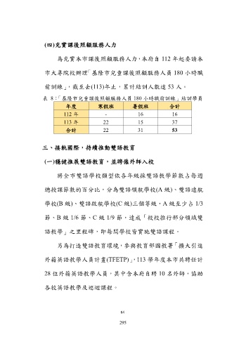 為充實本市課後照顧服務人力,本府自 112 年起委請本