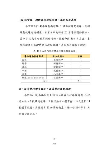 表 11:本府預算增聘專任運動教練名單