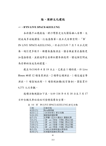 表 14:B’IN LIVE SPACE-KEELUNG 排定活動