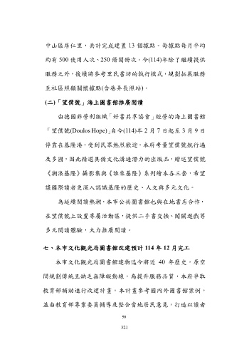 七、本市文化觀光局圖書館改建預計 114 年 12 月完工