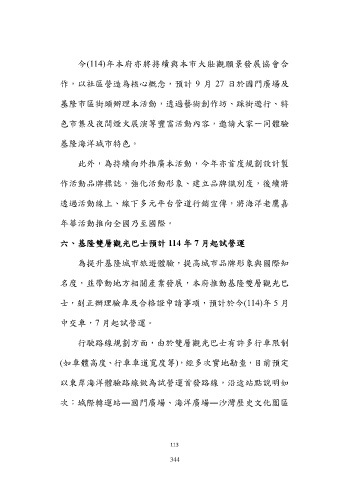 六、基隆雙層觀光巴士預計 114 年 7 月起試營運