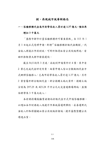 式辦理容積移入,已為市府帶來收入累計達 1.37 億元。另外