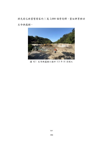 將先前已移置暫厝區約 1 萬 2,000 個骨灰罈、靈位牌等移回 生命典藏館。 圖 82:生命典藏館工程於 113 年 11 月開工 159 390