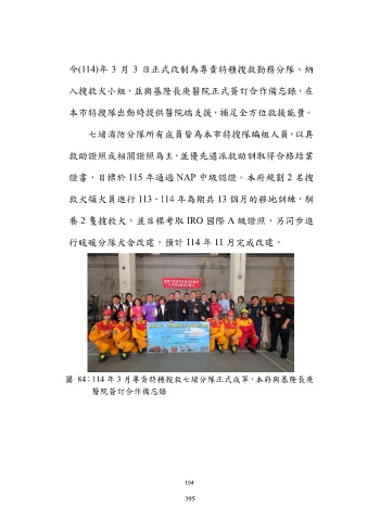 圖 84:114 年 3 月專責特種搜救七堵分隊正式成軍,本府與基隆長庚
