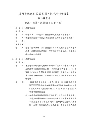 基隆市議會第 20 屆第 13、14 次臨時會提案