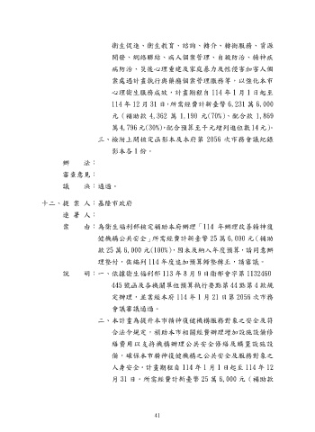 案 由:為衛生福利部核定補助本府辦理「114 年辦理改善精神復