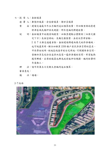 2 月 7 日與交通處會勘。秦鉦建請興建兩層式的停車場域,
