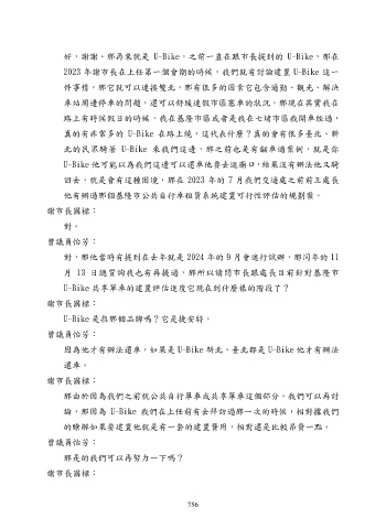 好,謝謝。那再來尌是 U-Bike,之前一直在跟市長提到的 U-Bike,那在
