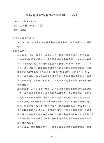 蔡議員旺璉市長施政總質詢(十八)