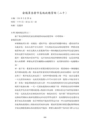 俞議員叁發市長施政總質詢(二十)