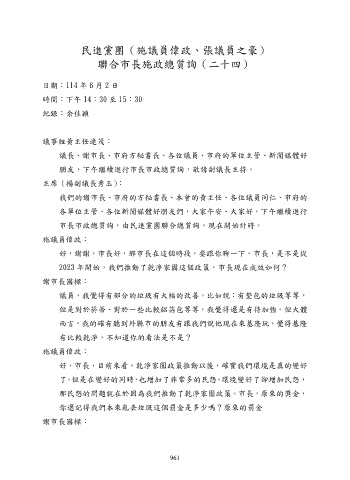 市長市政總質詢,由民進黨團聯合總質詢,現在開始計時。
